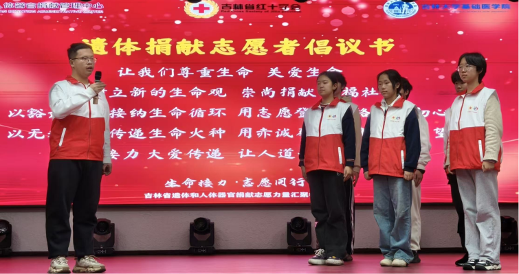 吉林省遗体捐献志愿者服务队共同发起,以搭建沟通桥梁、凝聚志愿力量为核心,吸引了众多师生志愿者参与,让遗体和人体器官捐献的崇高意义深入人心。