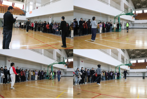 跳绳比赛中,选手们轻盈跳跃、默契配合,绳影翻飞间尽显活力;定点投篮项目同样以两院混搭组队,选手们凝神聚力、精准投掷,进球的欢呼与彼此的鼓励交织在一起,每一粒进球都承载着快乐与期待。