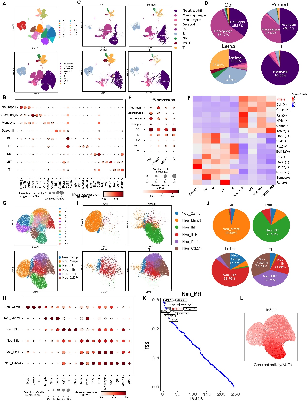 图2:单细胞图谱鉴定出Irf5⁺中性粒细胞及其分化轨迹