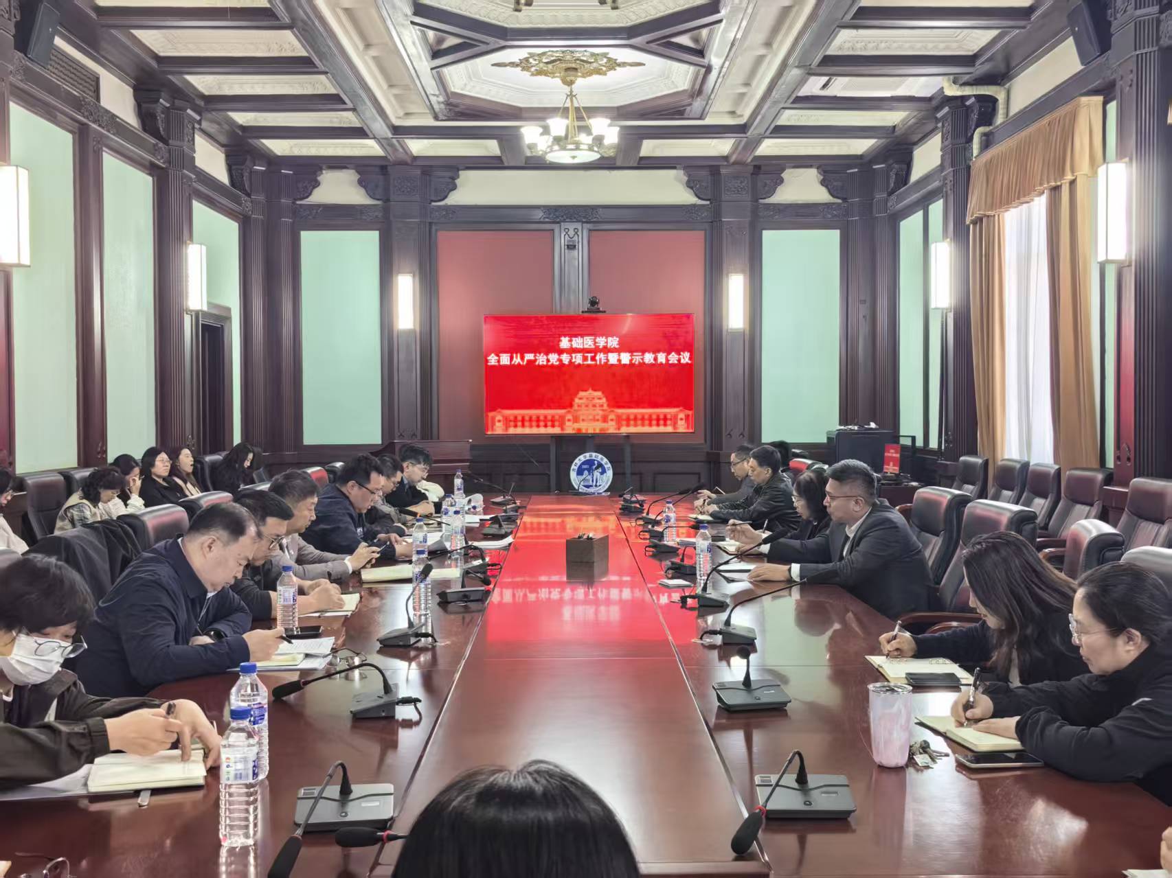 召开全面从严治党专项工作暨警示教育会议,深入贯彻党的二十大及二十届历次全会精神,严格落实二十届四中全会工作部署,全面领会二十届中央纪委五次全会要求,深学细悟习近平总书记关于党的建设、党的自我革命重要思想。学院领导班子成员、各科室(学系、中心)负责人、教工党支部书记参会。会议由学院院长王放主持。