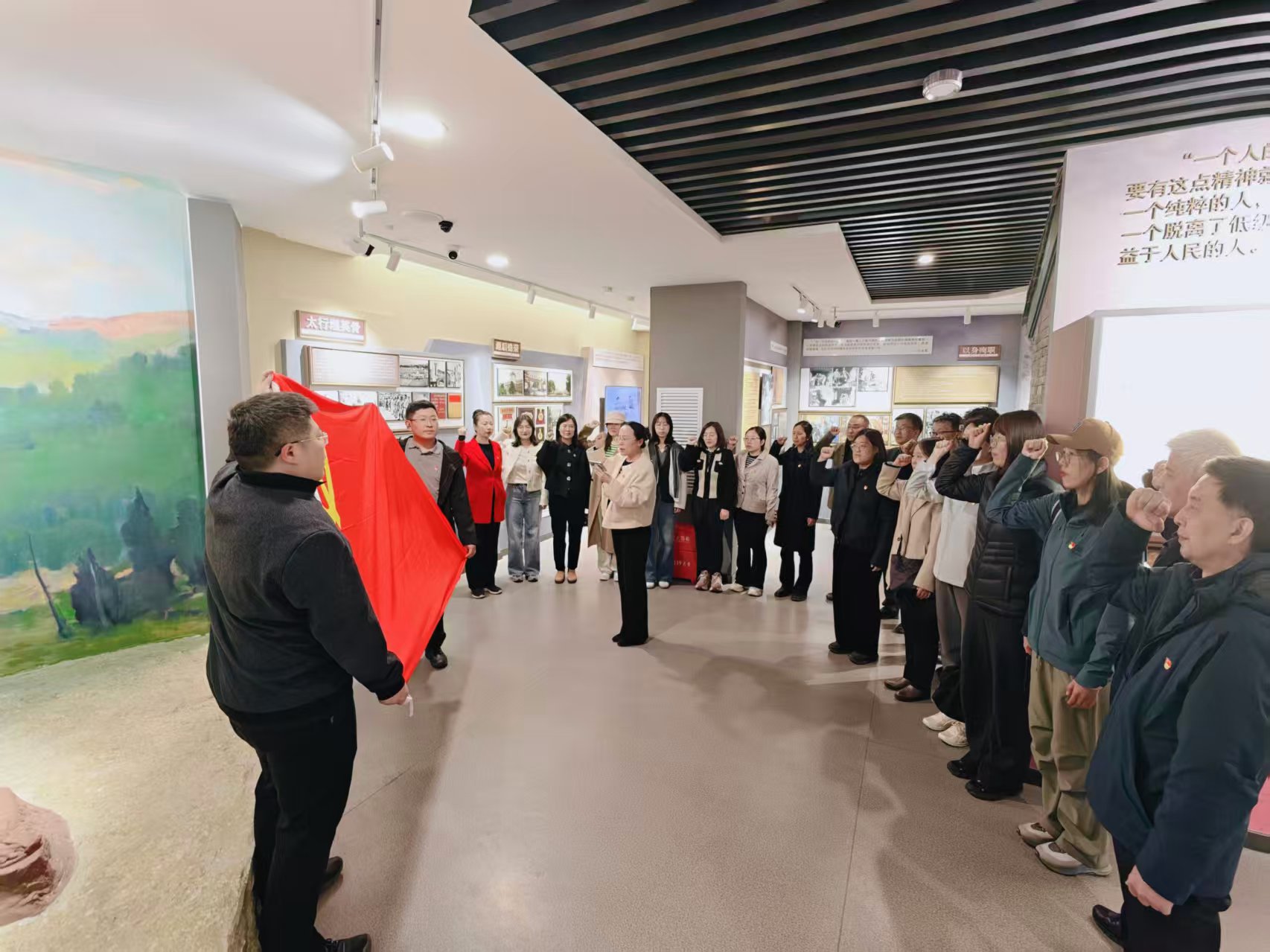 首先,全体党员面向鲜红的党旗肃立,在教工党支部书记何旭同志的带领下,庄严举起右拳重温入党誓词。铿锵誓言直击内心,全体党员经受了深刻的党性淬炼与思想洗礼,回望初心使命,筑牢信仰根基,进一步增强党员身份意识,明晰自身职责使命与担当。随后,大家集体参观了白求恩医学纪念馆。在讲解员的深情讲述下,大家透过一件件承载着历史记忆的珍贵文物、一幅幅定格着峥嵘岁月的生动图片,再次深刻感悟白求恩同志“毫不利己、专门利人”的崇高精神,重温其无私奉献、救死扶伤的初心使命,更对白求恩医学精神的薪火相传、生生不息感到由衷的骄傲与深深的震撼。